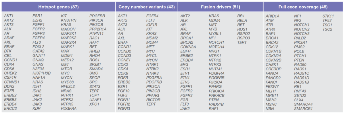 آزمون جامع Ion Torrent Oncomine یک آزمون مولتی بیومارکری هدفمند است که ما را قادر می‌سازد تا طیف وسیعی از جهش‌های هات‌اسپات، SNVها، CNVها، فیوژن‌های ژنی و Indel‌ها را در هر دو نمونه‌ی DNA و RNA  در یک دور آزمایش تشخیص دهیم. ژن‌های هدف این آزمون شامل 161 ژن است که تمامی این موارد براساس درمان‌های هدفمند موجود، گایدلاینهای معتبر جهانی و یا کارآزمایی‌های بالینی انتخاب شده‌اند. در صورت صلاحدید پزشک متخصص نتایج این آزمون می‌تواند کمک شایانی به تشخیص دقیق و درمان هدفمند بیمار کند.